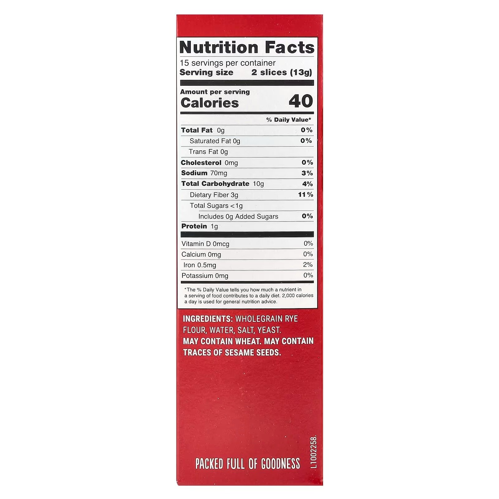 Finn Crisp contém 100% de centeio integral dos ingredientes do grão.